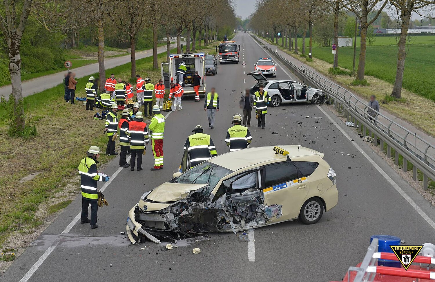 Drei Erwachsene und zwei Kinder mussten heute nach einem Verkehrsunfall in Krankenhäuser gebracht werden.