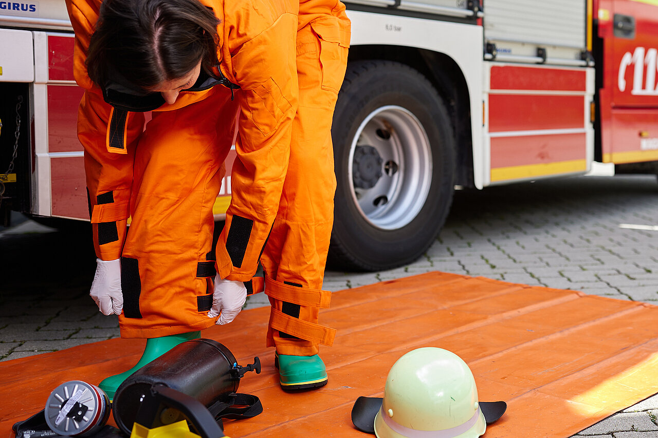 Der vom Bundesamt für Bevölkerungsschutz und Katastrophenhilfe (BBK) beschaffte einteilige Schutzanzug schützt gegen alle bekannten hautgängigen bzw. hautzerstörenden spezifischen chemischen Kampfstoffe als Tröpfchen und Dämpfe (Aerosole).